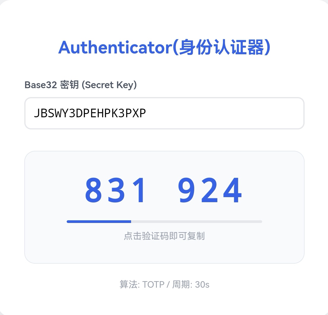 下一步是两步验证,需要把2fa密钥复制到https://2fa.oihao.com得到验证码